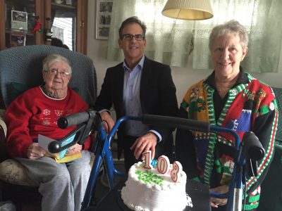 On December 23, 2016, the hospital’s CEO, Frank Vassallo, and the President of the KDH Auxiliary, Jane Wolfe, paid a visit to Pominville to express their gratitude and wish her a happy birthday.